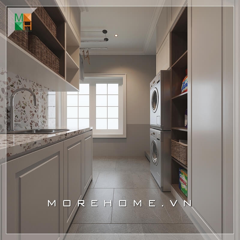 Với ý tưởng trong mẫu trang trí nội thất biệt thự Parkcity trong đây, bạn có thể bố trí ngay không gian đảo tách biệt phòng bếp để có thể phục vụ nhanh nhu cầu của mình mà vẫn đảm bảo nhu cầu tức thời từ bộ tủ đựng đồ được bố trí máy rửa bát, bồn rửa tiện lợi.