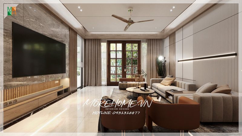 Bàn trà đóng vai trò là điểm nhấn giúp không gian căn phòng trở nên lịch sự thân thiện mỗi khi bước chân vào.