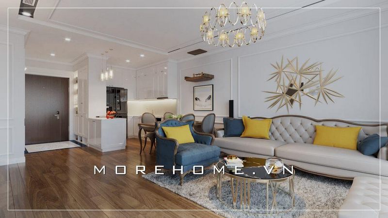 Lựa chọn bộ sofa gỗ óc chó cao cấp được bọc da màu trắng sang trọng và nghệ thuật với phong cách tân cổ điển cùng kiểu dáng văng tiện lợi cho phòng khách chung cư thêm đẳng cấp, ấn tượng.