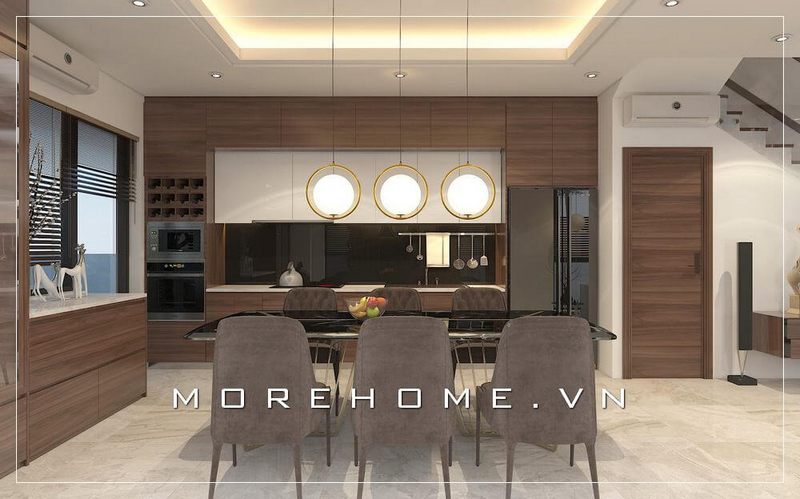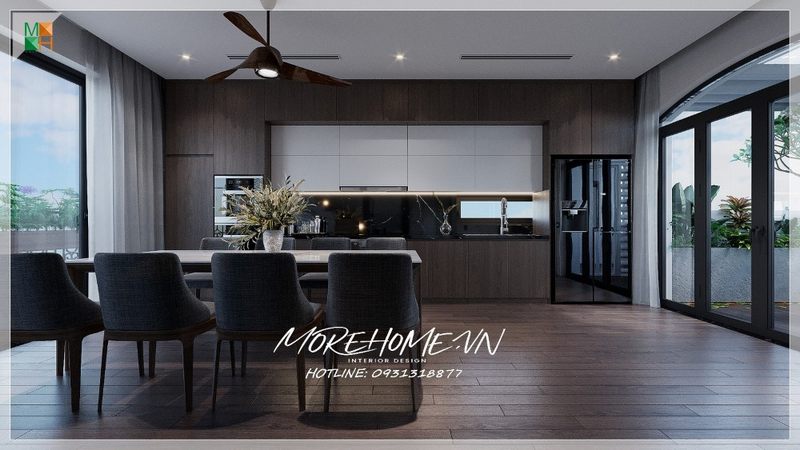 Thiết kế nội thất phòng bếp liền ăn hiện đại và trẻ trung cho nhà biệt thự