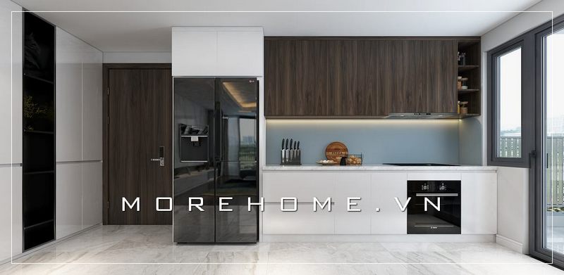 Mẫu tủ bếp gỗ công nghiệp màu nâu đẹp cho phòng bếp hiện đại