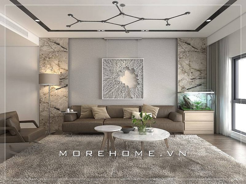 Thiết kế ốp vách tivi bằng đá nhân tạo vân xám sang trọng mang lại vẻ đẹp hiện đại, cao cấp cho không gian phòng khách