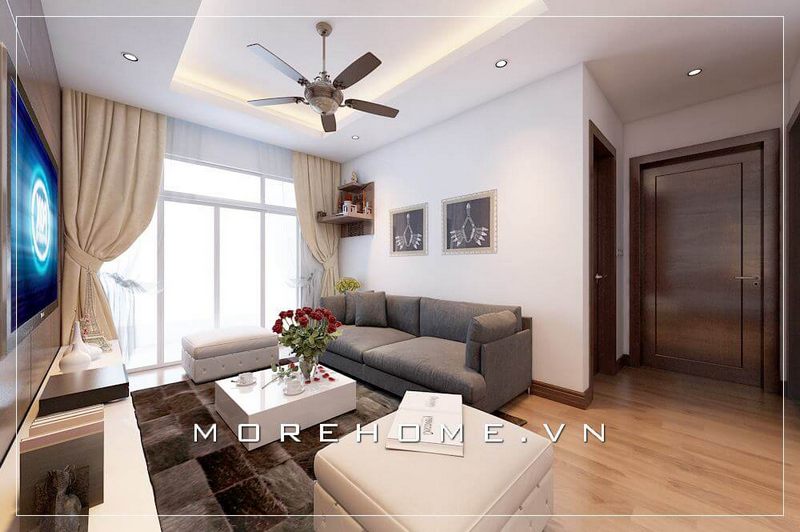 Thiết phòng khách chung cư nhỏ theo xu hướng tối ưu hóa nội thất, chỉ sử dụng những nội thất cần thiết với màu sắc tươi trẻ làm căn phòng gọn gàng và đẹp mắt hơn.