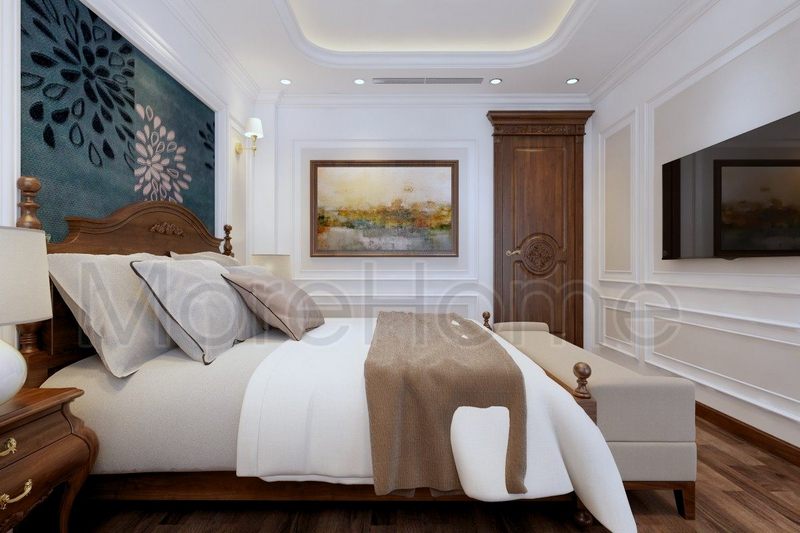 Mẫu giường bọc nỉ tân cổ điển đẹp này được thiết kế sang trọng kết hợp với khung gỗ sồi cao cấp, tạo sự chắc chắn mà không kém phần sang trọng. Đây là kiểu mẫu phòng ngủ tân cổ điển hiện đại khá là phổ biến hiện nay