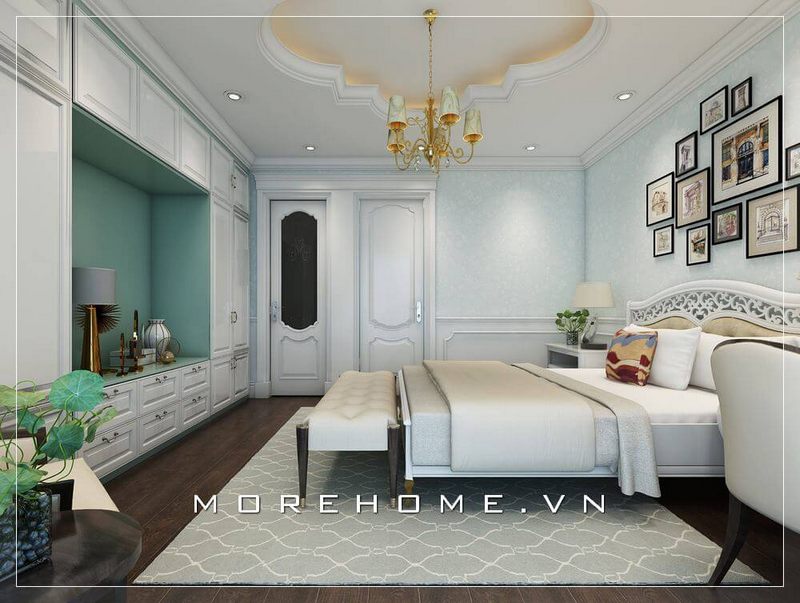 Trang trí nội thất phòng ngủ màu trắng góp phần mang lại cho không gian sống của gia chủ thêm sang trọng mà không kém phần hiện đại