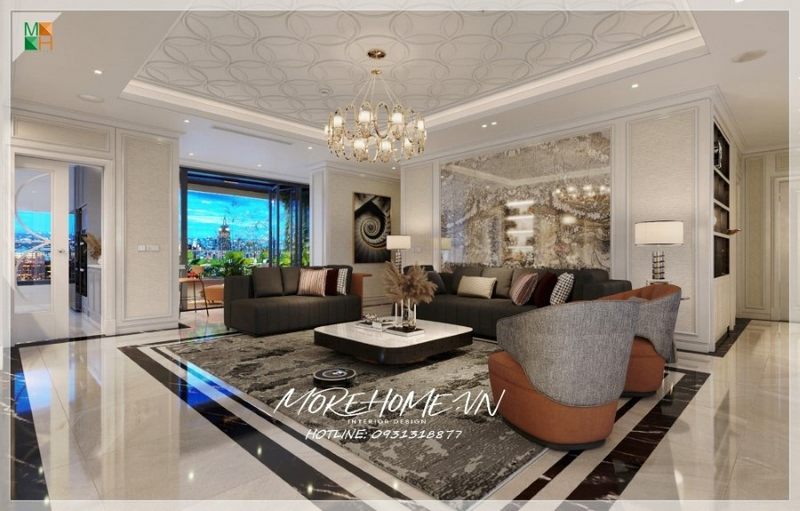 Không gian sống thoải mái hiện đại là điều ai cũng mong muốn và hướng tới với mẫu thiết kế phòng khách liền kề phòng bếp chung cư hiện đại.