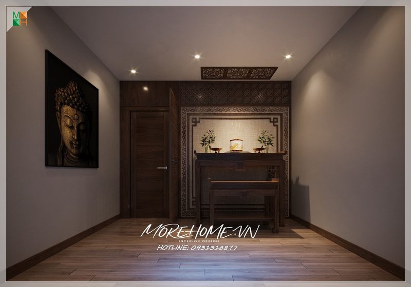 Bố trí nội thất phòng thờ đẹp, trang trọng hợp phong thủy từ nội thất gỗ óc chó cao cấp.