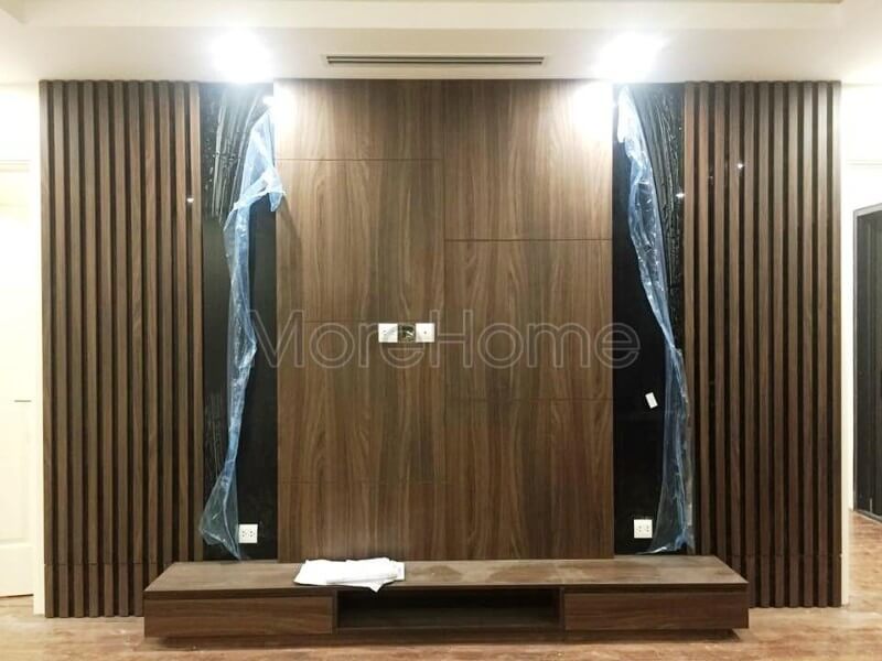 Morehome đã hoàn thành việc thi công hệ tủ gỗ trang trí nội thất cho phòng khách biệt thự 4 tầng ở Nghệ An.